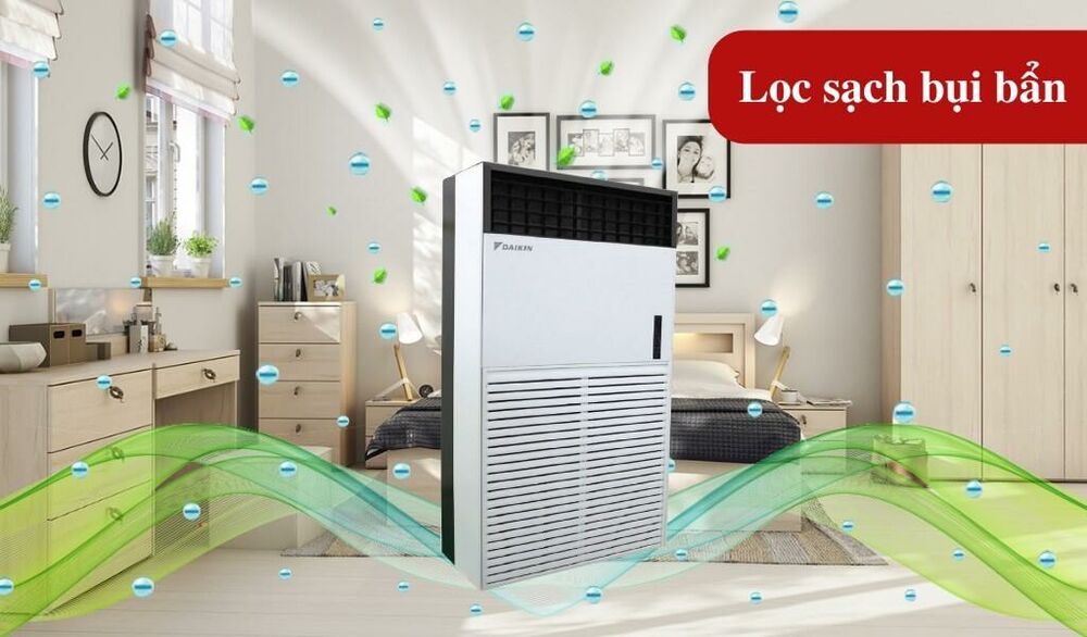 Điều hòa tủ đứng Daikin tích hợp hệ thống lọc không khí hiện đại giúp loại bỏ bụi bẩn, vi khuẩn, mang lại không gian trong lành và dễ chịu hơn cho người sử dụng.